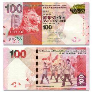 正面:以汇丰狮子“施迪”作主体,背景为亚太区汇丰总行大厦